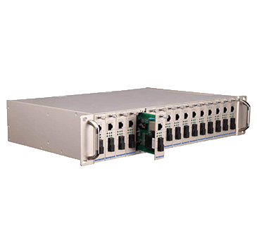 T200-K16網(wǎng)管型機架式光纖收發(fā)器采用靈活的模塊化設(shè)計,整機為16槽位2U機箱,由電源模塊和標(biāo)準(zhǔn)的熱插拔模塊構(gòu)成。產(chǎn)品與多種光纖收發(fā)器子卡配套使用,可插入百兆電口、百兆光口、千兆電口、千兆光口等多種接口的子卡,適用于不同應(yīng)用現(xiàn)場的需求。